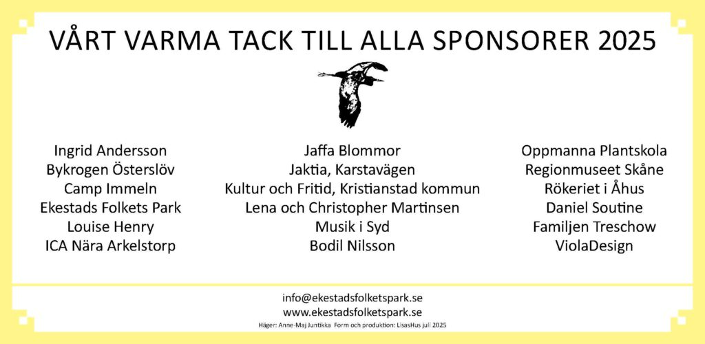Styrelsen för Ekestads Folkets Park söker sponsorer som kan bidra och underlätta arbetet med den varsamma restaureringen och vården av byggnadsminnet. Samtliga intäkter under året går oavkortat till drift och byggnadsvård av parken.